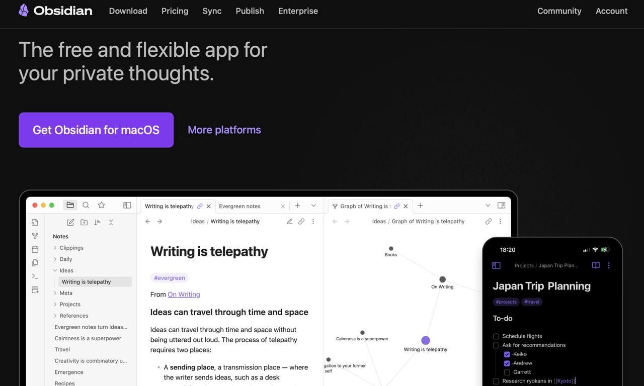 Obsidian доступен для Windows, macOS, Linux, а также в виде приложений для iOS и Android.